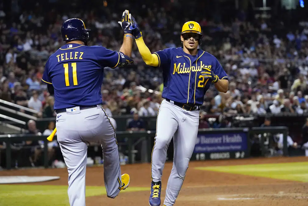 PHOENIX (AP) — Willy Adames malogró el juego sin hit de Merrill Kelly en el séptimo capítulo, al disparar un jonrón por todo el jardín central, mientras que Corbin Burnes lanzó ocho innings en blanco y los Cerveceros de Milwaukee derrotaron el martes 7-1 a los Diamondbacks de Arizona.