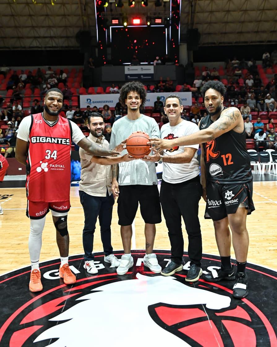 El jugador de la NBA Andersson García realizó el saque de honor durante el medio tiempo del partido de hoy