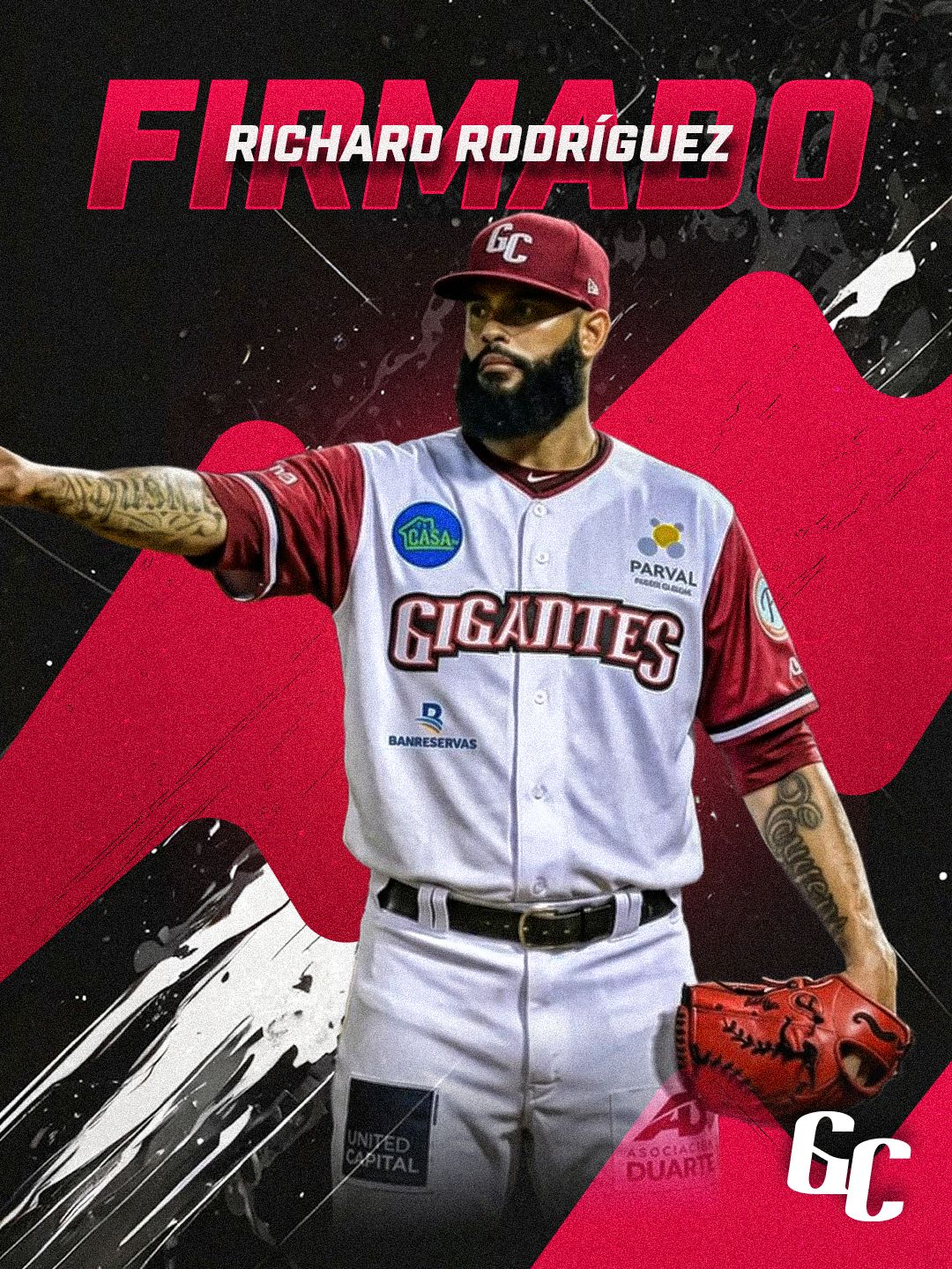 Richard Rodríguez es un veterano relevista de 35 años, nativo de Santiago, con experiencia en Grandes Ligas y liderazgo probado. Richard llega al equipo con nueve temporadas de experiencia en LIDOM, donde ha construido una carrera sólida. El derecho acumula récord de 12-8, con 3.06 de efectividad en 138.1 innings lanzados. A lo largo de su trayectoria también ha mostrado buen dominio en la lomita, registrando 158 ponches y un WHIP de 1.20, números que reflejan su consistencia y lo convierten en un brazo veterano confiable dentro de la liga.