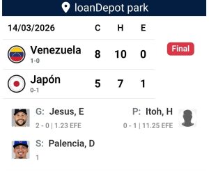 Venezuela national baseball team avanzó a las semifinales del World Baseball Classic 2026 y su próximo rival será Italy national baseball team.